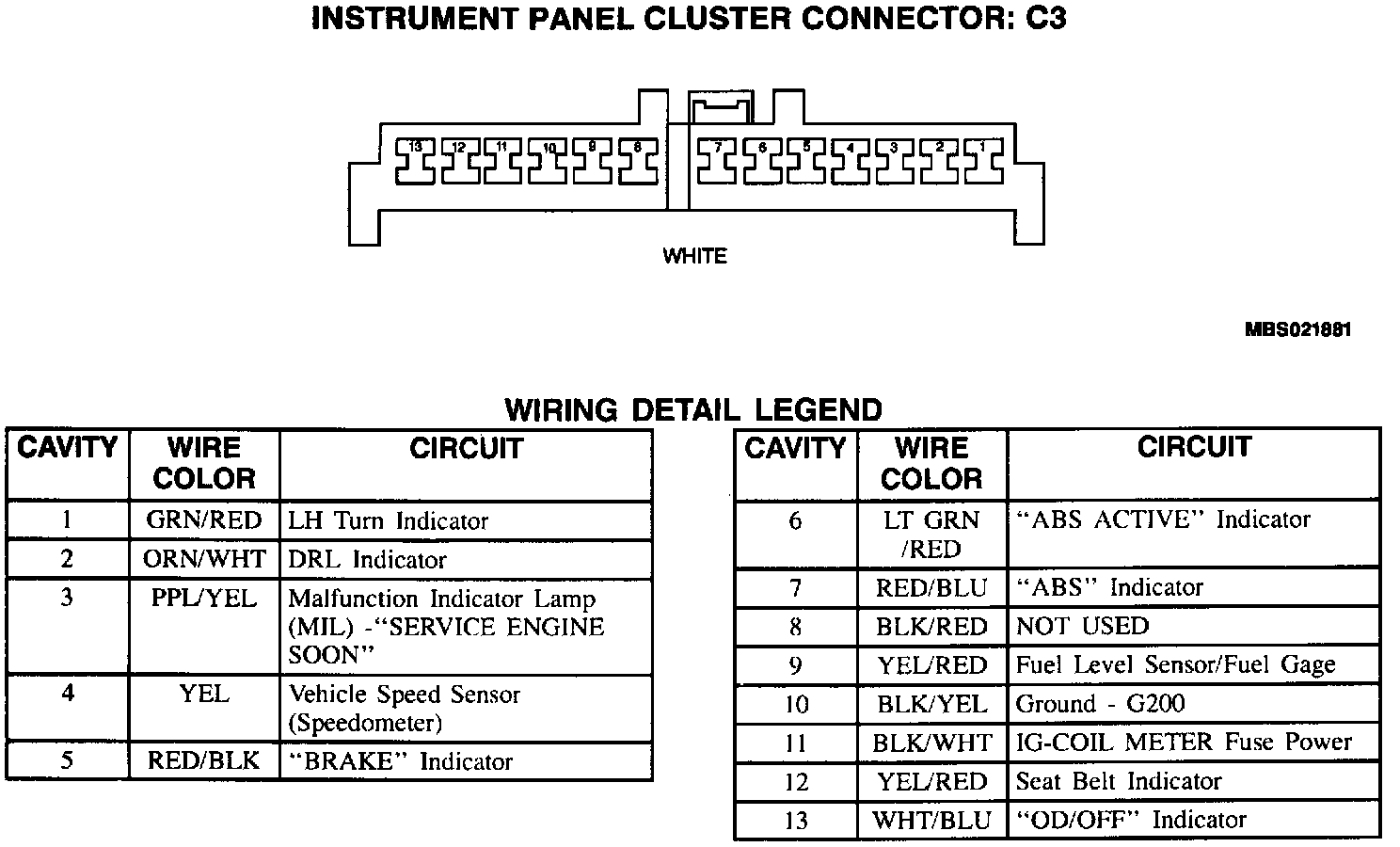 Instrument Panel Cluster Connector: C3:
