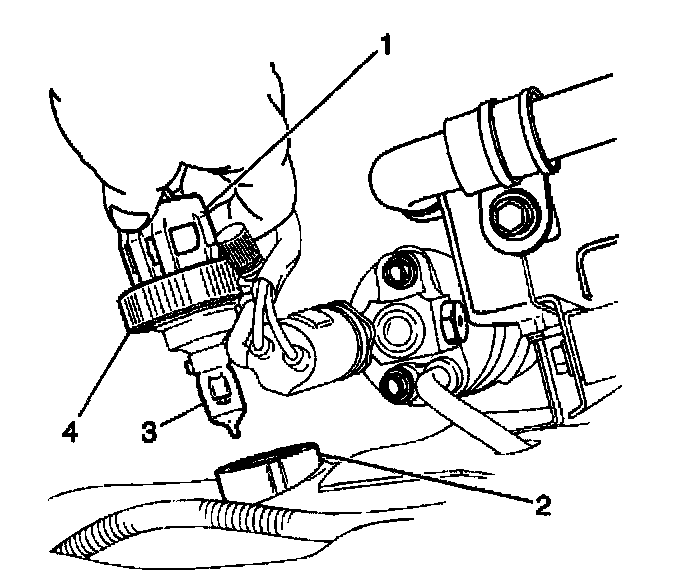 2. Turn the lock ring (4) counterclockwise in order to remove the headlamp bulb (3) from the headlamp assembly (2).