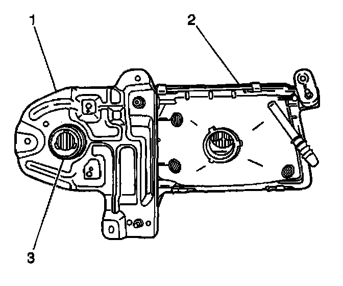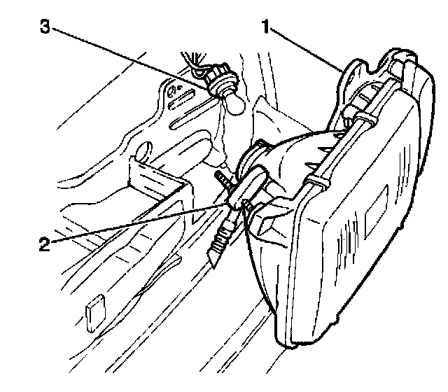 7. Remove the housing (3) from the headlamp assembly mounting bracket (1).