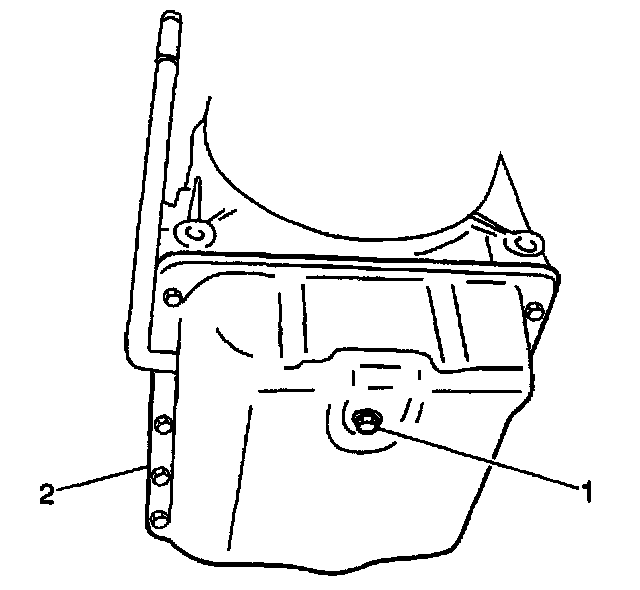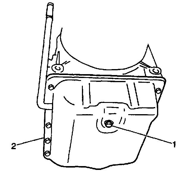 7. Remove the drain plug in order to allow the transmission fluid pan (2) to drain.