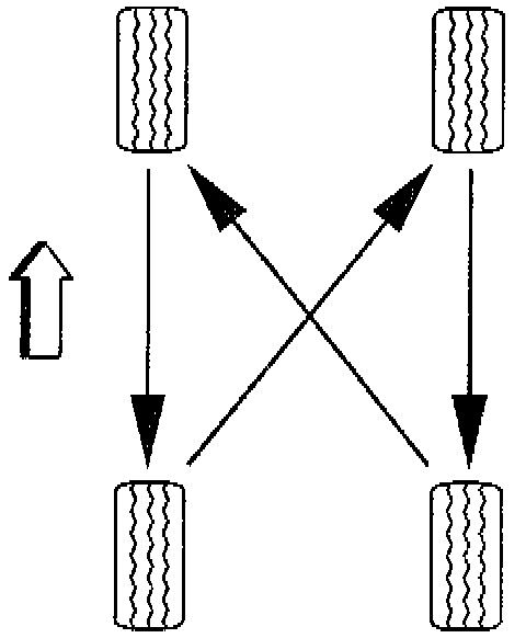 If the spare wheel does not match other wheels, use the following tire rotation pattern