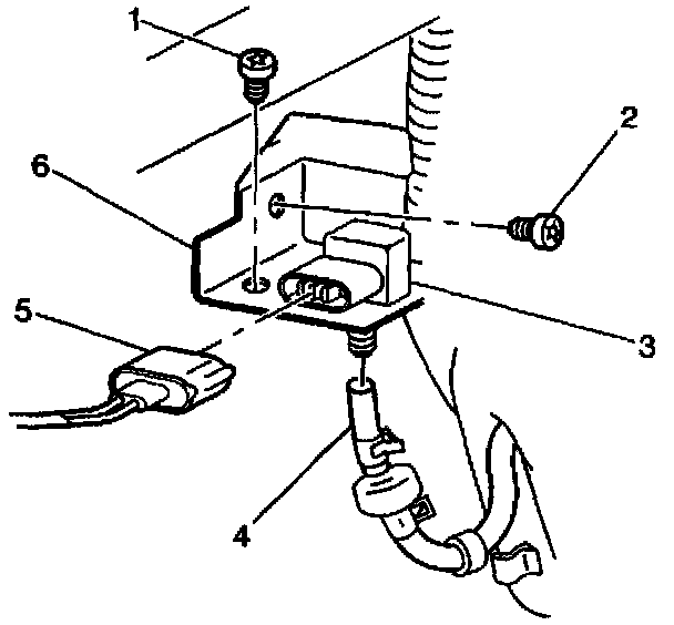 3. Disconnect the one bolt (2) and the MAP sensor and bracket (6) from the bulkhead.