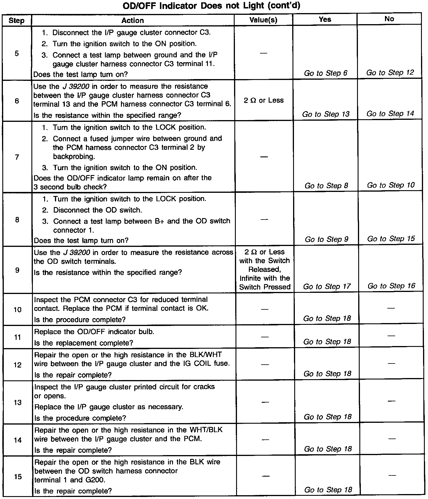 8. This step tests for a reduced ground (G200) to the OD switch.