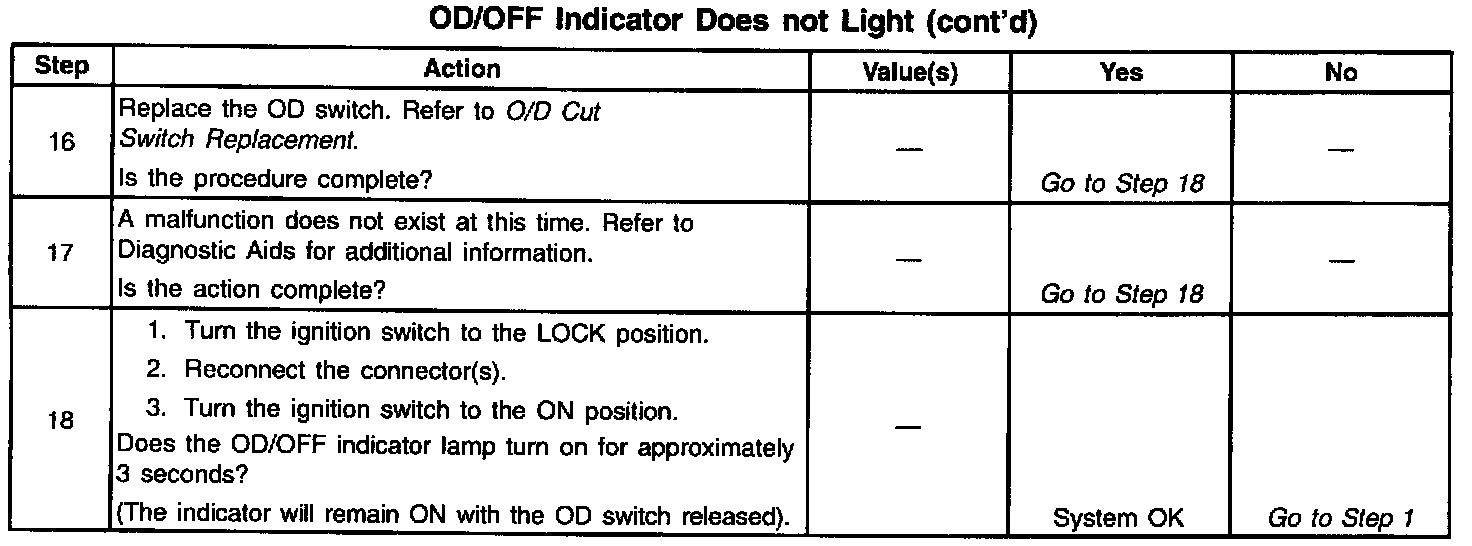 18. This step tests for proper operation of the OD/OFF indicator.