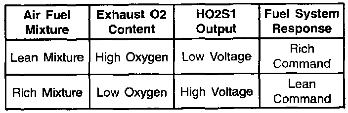 The HO2S 1 voltage should constantly fluctuate from approximately 100 mV (high oxygen content - lean mixture) to 900 mV (low oxygen content - rich mixture). The PCM calculates what fuel mixture commands to send to the fuel injectors by monitoring the voltage output of the oxygen sensor. The oxygen sensor voltage can be monitored with a scan tool.