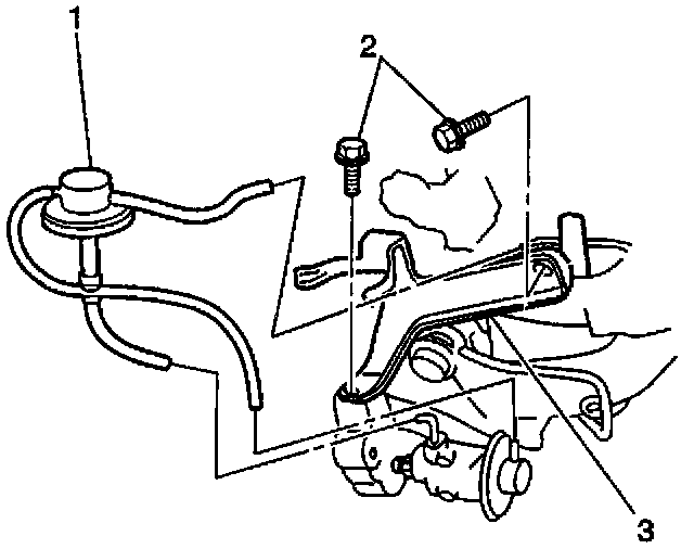 2. Remove the Exhaust Gas Recirculation (EGR) pressure transducer (1) from the pressure transducer bracket (3).