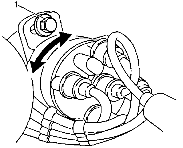8. Loosen the distributor hold down bolt (1) and rotate the distributor.