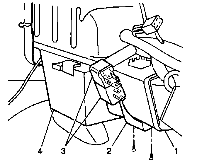 3. Install the headlamp relays 1 and 2 mounting bracket (2) to the blower case (1). Secure the mounting bracket (2) with the 2 screws.