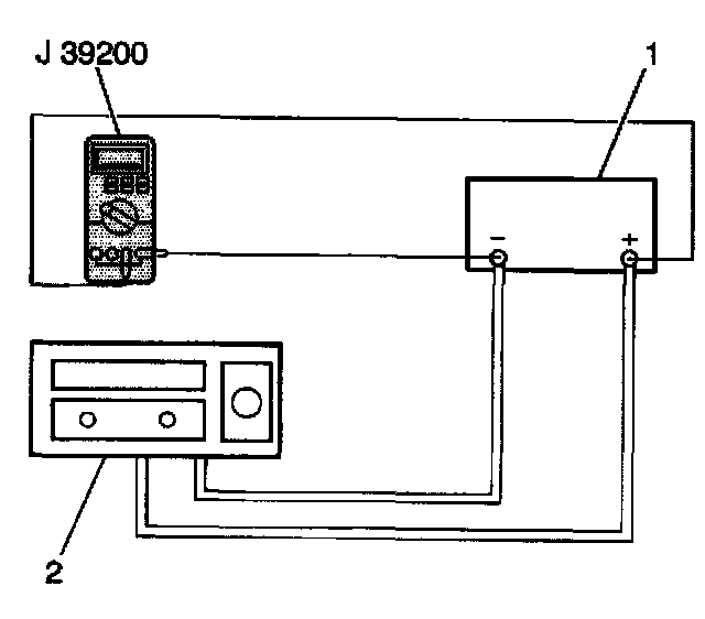 1. Connect a J 39200 and a battery load tester (2) across the battery terminals.