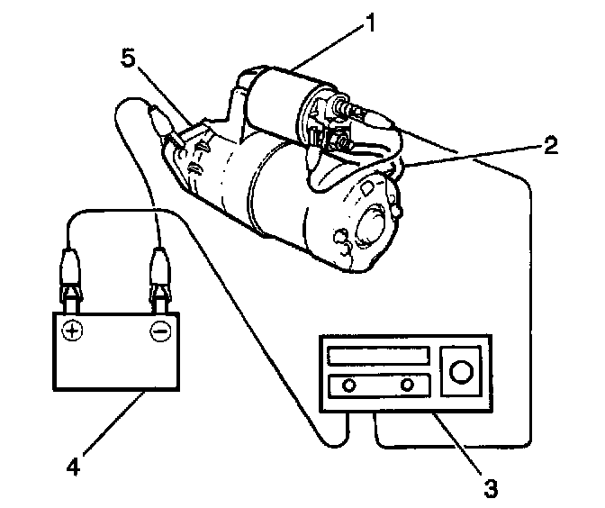3. Connect the test leads from the battery (4) and the ammeter (3) to the starter motor assembly.