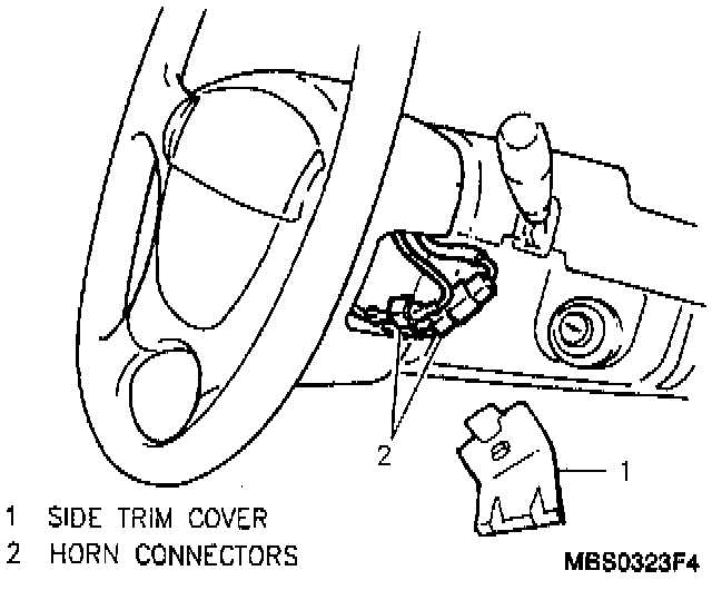 3. Two horn wire connectors and right side steering wheel trim cover.