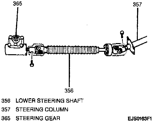 1. Make sure the front wheels are in a straight-ahead direction before removing lower steering shaft.