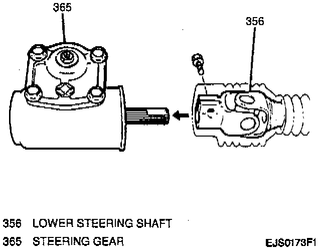 1. Lower shaft to steering gear, aligning flat on steering gear shaft and lower shaft.