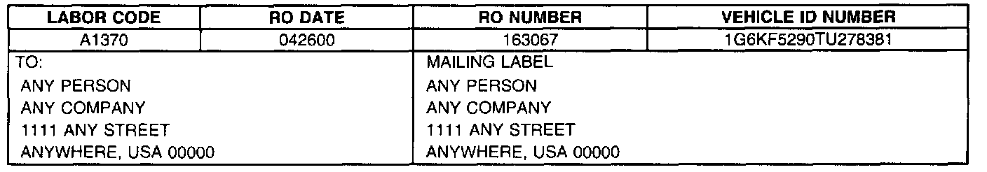 Shown are R.O. Only request which should be returned to the requestor via the post office using the mailing label provided. No R.O. Only request should be returned to the Warranty Parts Center.