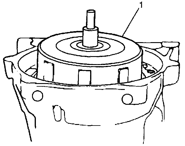 4. Carefully install the forward clutch (1) to the transmission case in order to prevent dropping the thrust bearing and races.