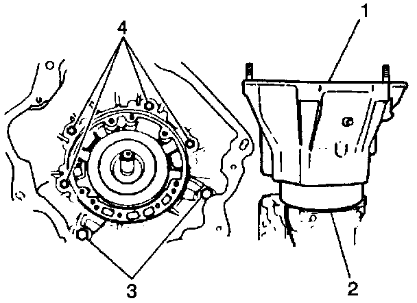 13. Remove the J 41626 from the transmission case (1).