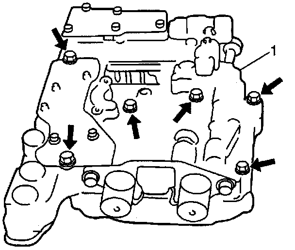 3. Install a new upper valve body gasket (1) to the lower valve body.