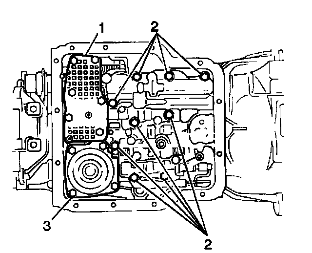 3. Remove the transmission fluid pan and gasket from the transmission. Refer to Transmission Oil Pan Removal.
