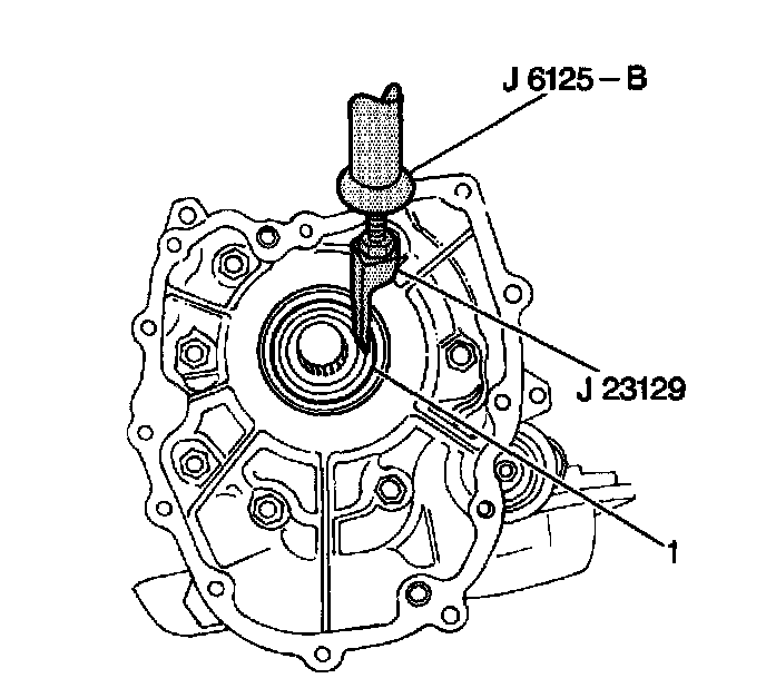 4. Remove the transfer adapter case seal (1) from the transfer adapter case using the J 23129 and the J 6125-B.