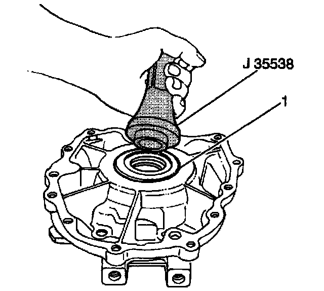 2. Install the new transfer adapter case seal (1) into the transfer adapter case using a J 35538.