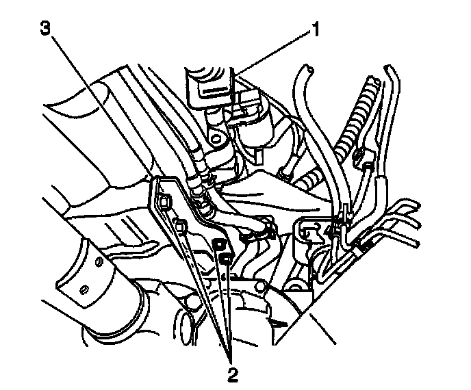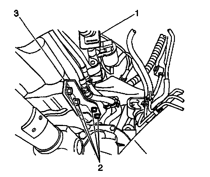10. Remove the T.V. cable (2) from the throttle body linkage and unroute the cable from the upper part of the engine.
