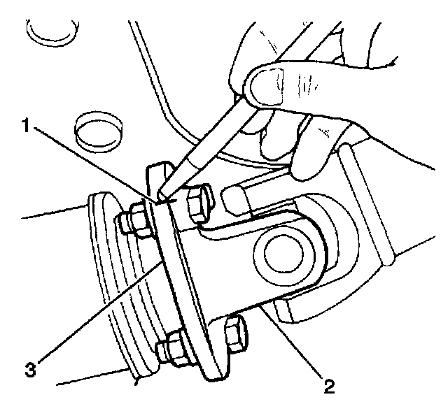 18. Place a reference mark on the rear propeller shaft pinion flange (1).