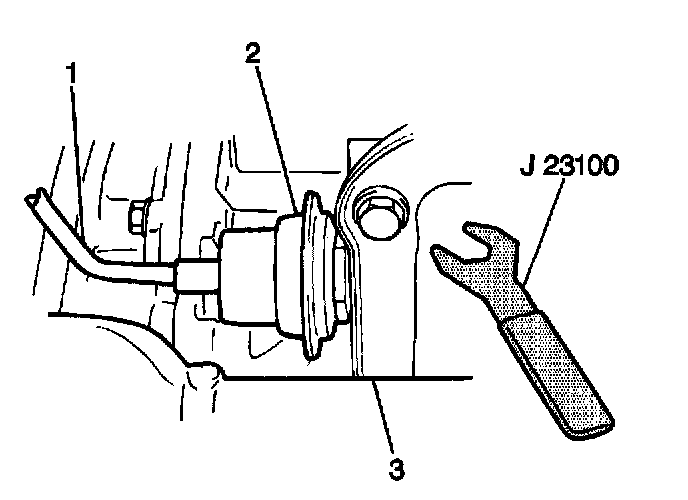 2. Use the J 23100 in order to install the vacuum modulator plunger (3) into the transmission.