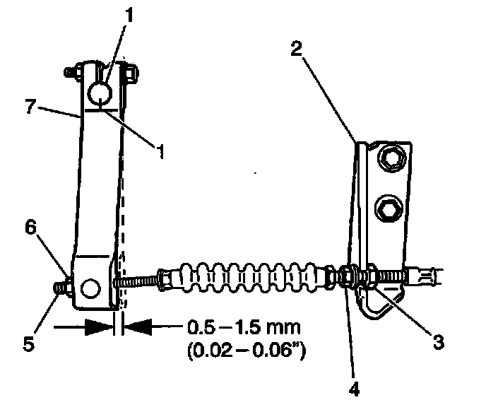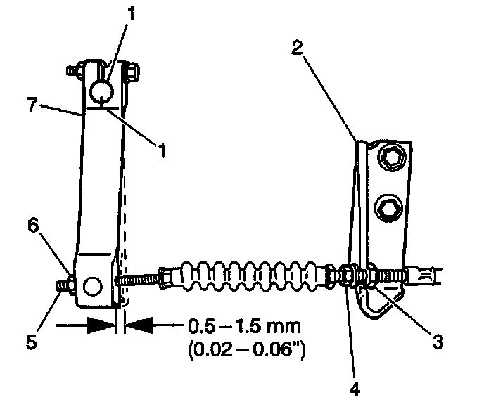 6. Install the clutch cable (5) into the clutch release lever (7) and the clutch cable bracket (2); secure with the clutch release lever adjustment nut.