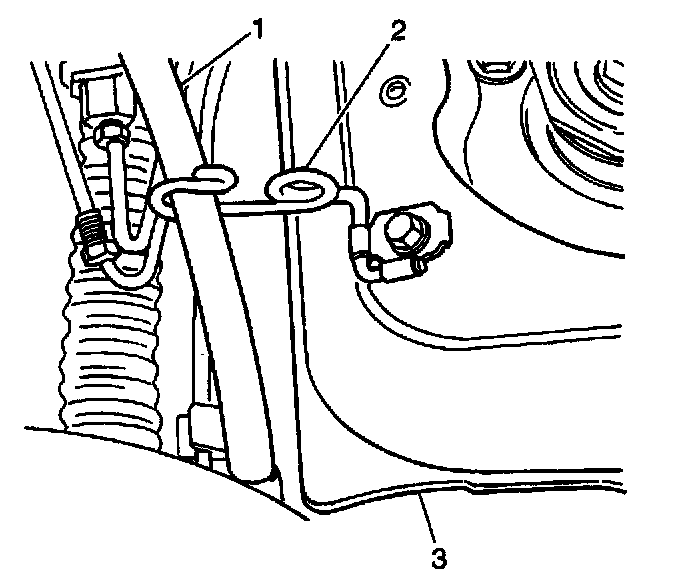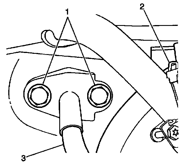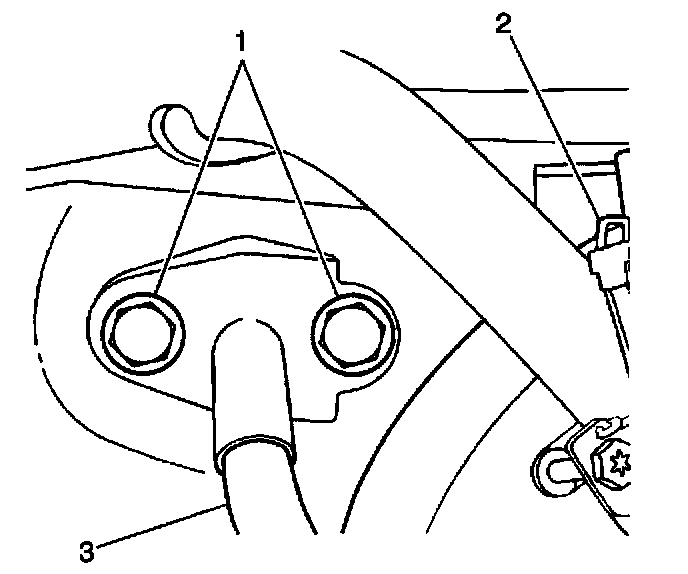 8. Remove the two clutch cable grommet bolts (1) and the clutch cable (3) from the vehicle from the engine compartment side of the bulkhead.