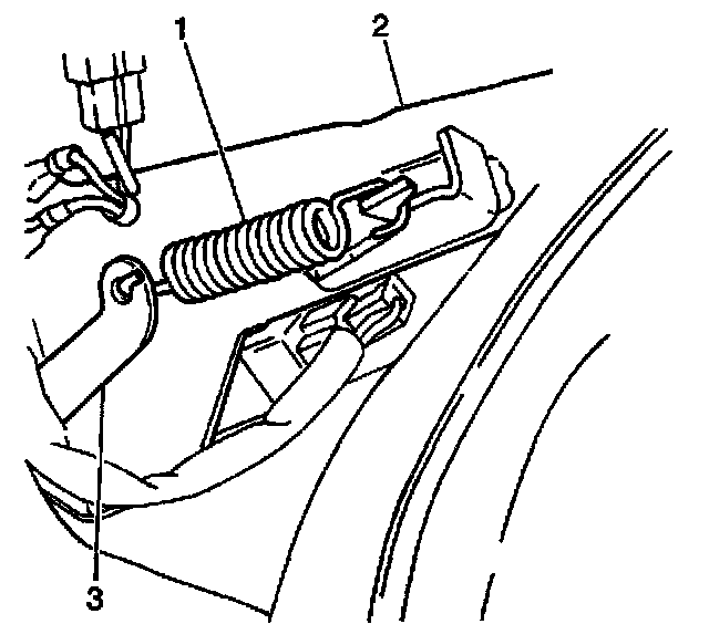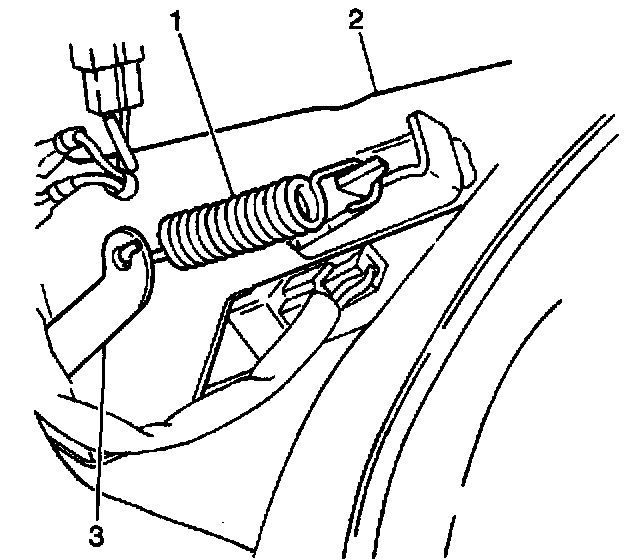 2. Remove the clutch pedal return spring (1) from the brake pedal bracket (2).