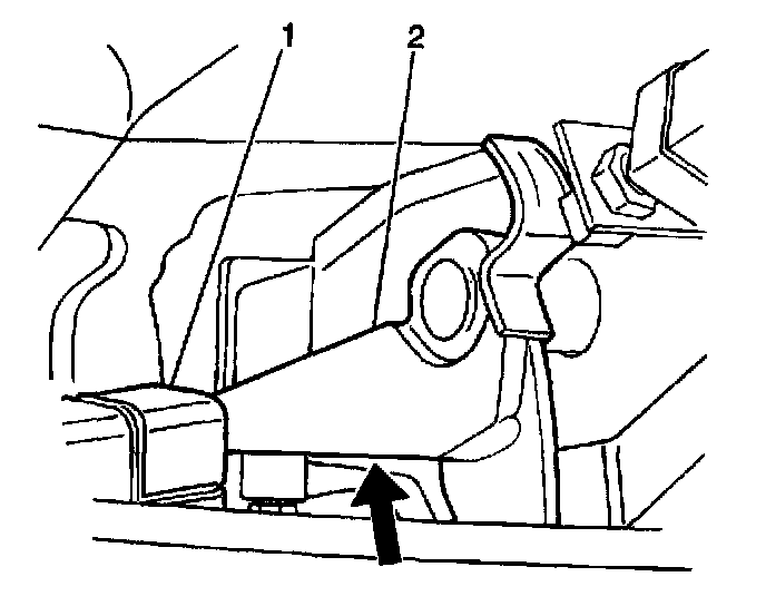 3. Push the clutch pedal (2) in to clear the Electronic Brake Control Module (EBCM) (1) and slide the clutch pedal (2) to the left (if equipped).