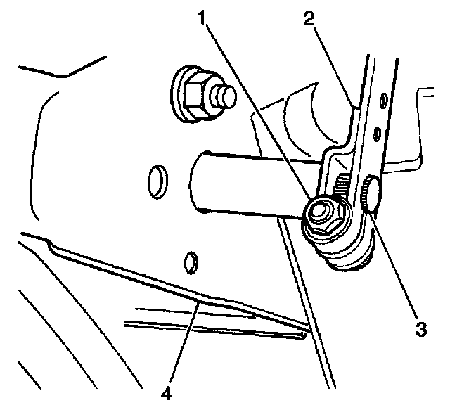 1. Remove one nut (1), one bolt (1) and the clutch pedal shaft arm (2) from the clutch pedal shaft (3).