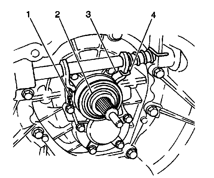 5. Inspect the clutch release bearing (2) for external damage and smooth rotation. If external damage exists or the bearing does not operate smoothly, replace the clutch release bearing.