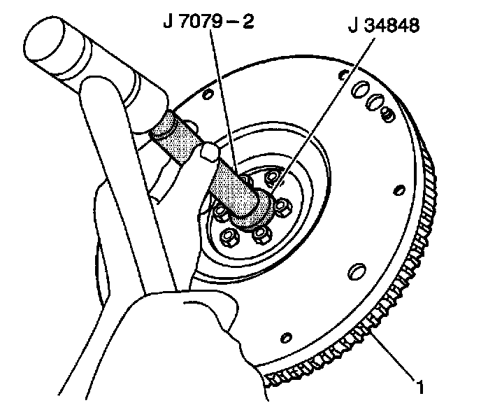 1. Install the clutch bearing into the crankshaft using the J 34848 with the J 7079-2.