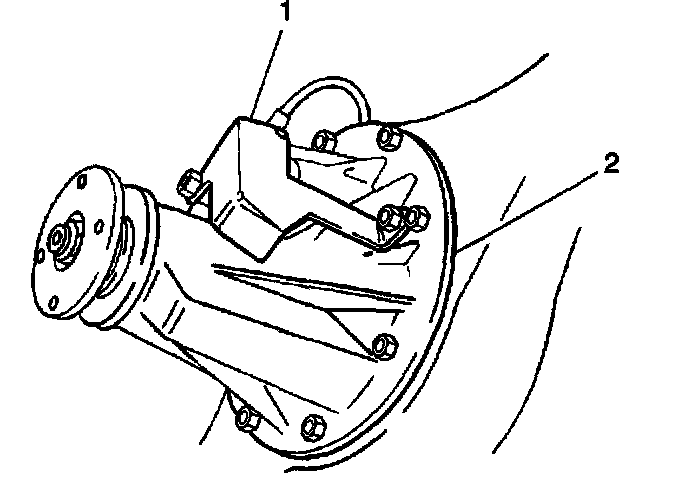 4. If vehicle equipped, install the rear wheel speed sensor cover (1) to the differential carrier (2). Secure the cover with two bolts.