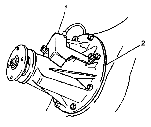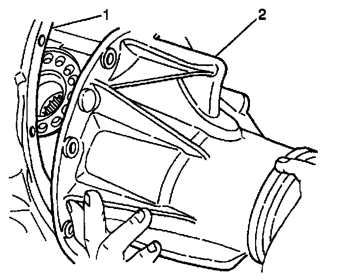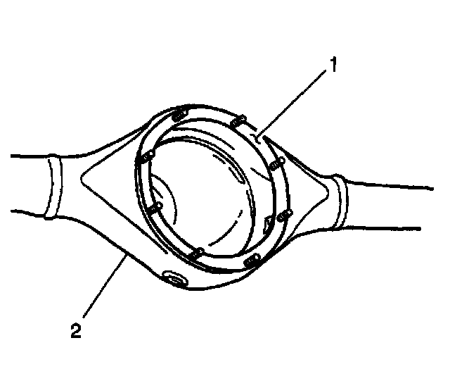 1. Apply RTV silicone gasket and sealer GM P/N 12346240, or equivalent, to the differential carrier mating surface (1) on the rear axle housing (2).