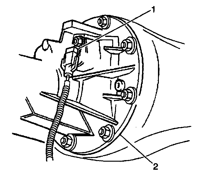 14. If vehicle equipped, remove the electrical connector (1) from the rear wheel speed sensor.