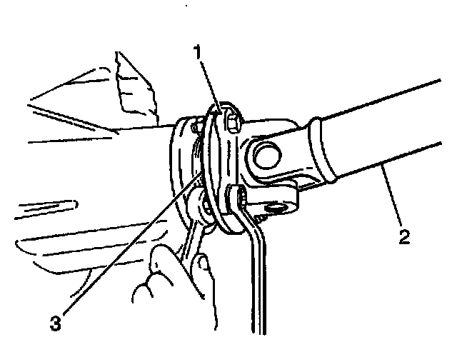 7. Install the rear propeller shaft (2) into the vehicle.