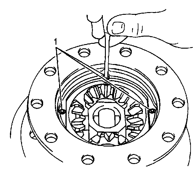 22. Remove three roll pins (1) from the right differential case using a hammer and a standard drift punch.