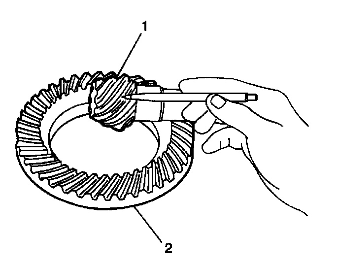 28. Inspect the ring (2) and pinion (1) gears for excessive or unusual wear, cracks, overheating or other damage and replace as necessary.