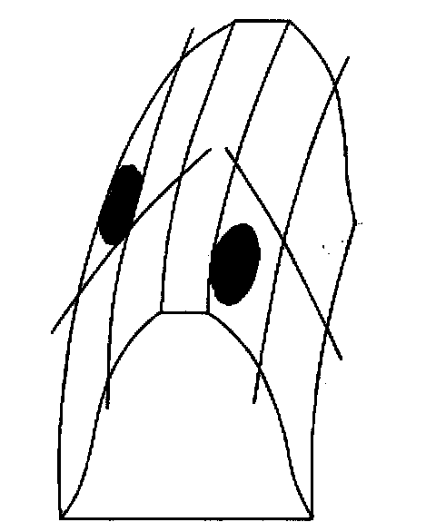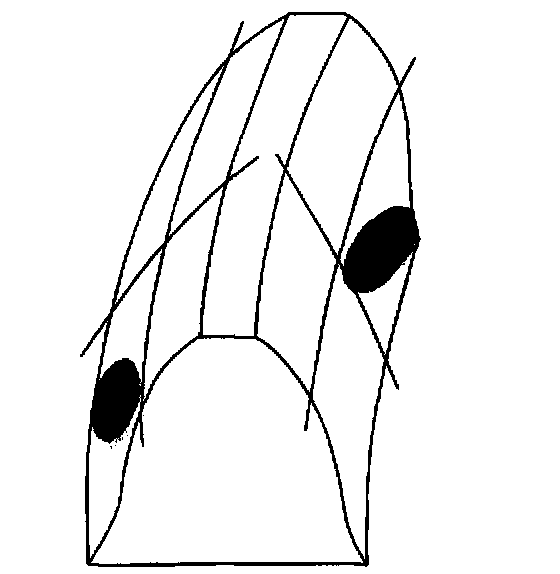 ^ A coast pattern from heel (2) to toe (1) has a normal drive contact.