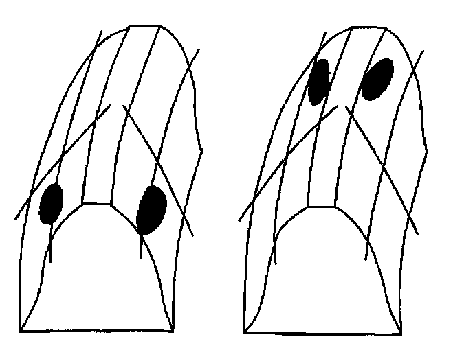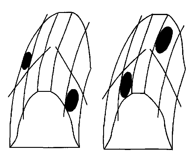 ^ A typical drive pattern from heel (2) to toe (1) has a normal drive contact.