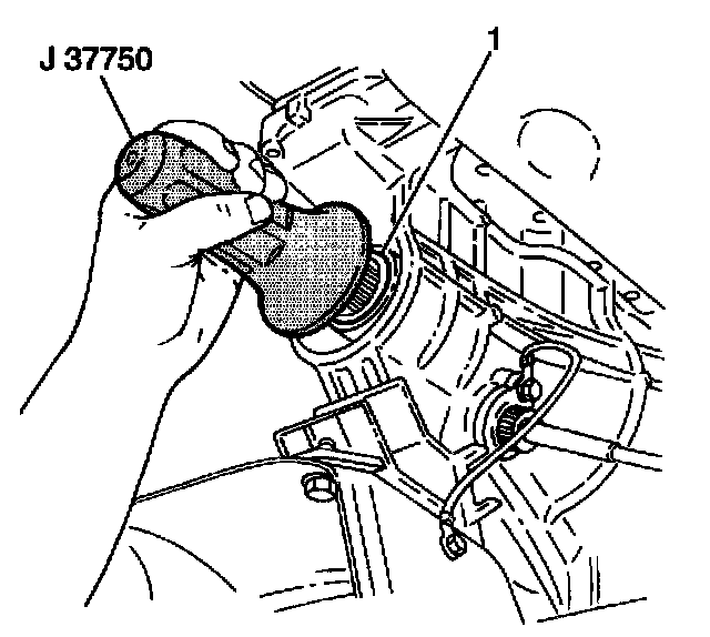 1. Install the new extension case oil seal (1) into the extension case using a J 37750 and a hammer.