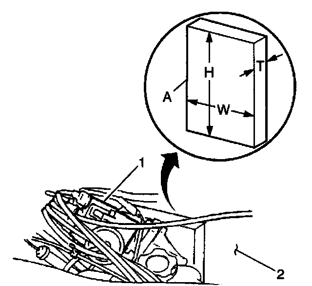 16. Place a wood block between the distributor gear housing and the bulkhead (2) in order to prevent the distributor and the other components from being damaged when the transmission is lowered.