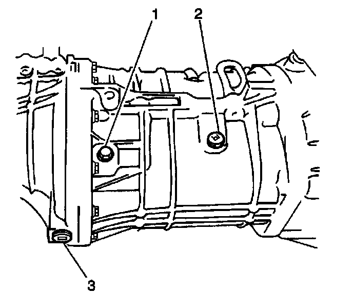 17. Apply GM P/N 12346004, or equivalent, to the threaded portion of the transmission oil level/filler plug (2).