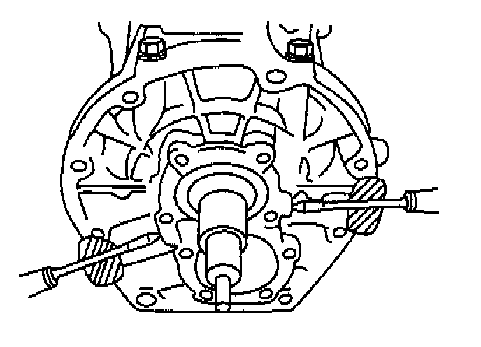 6. Use two flat-bladed tools in order to remove the input shaft bearing retainer from the upper and lower cases.