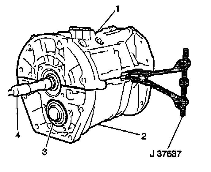 8. Use the J 37637 in order to separate the upper (1) and lower (2) case halves.