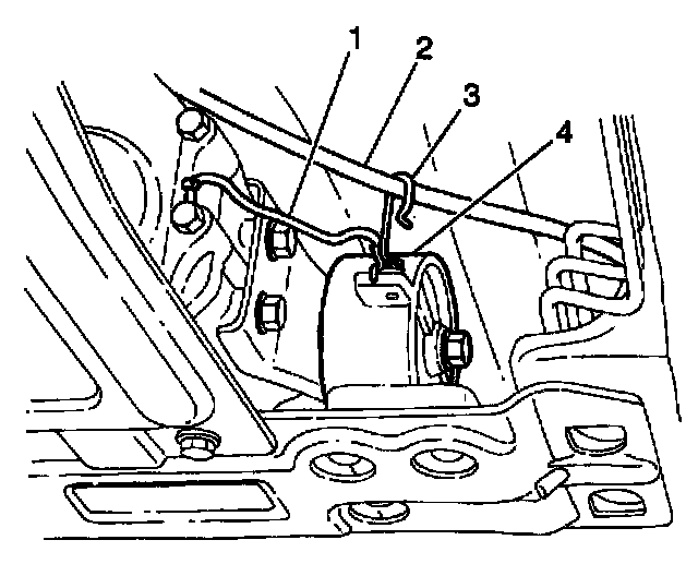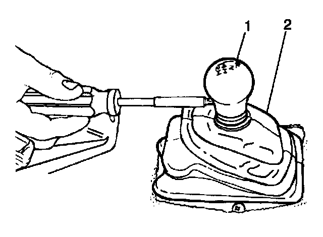 7. Remove the gearshift control lever (1) from the gearshift lever case (2) by pushing down on the gearshift control lever pivot (3) and turning counterclockwise 90 degrees (1/4 turn) and lifting up (if equipped).