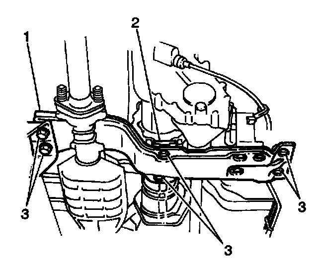 8. Install the transfer case crossmember (1) to the undercarriage. Secure the crossmember with six bolts (3).
