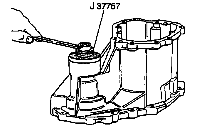 41. Use the J 37757 in order to install the rear output shaft needle bearing in the rear case.